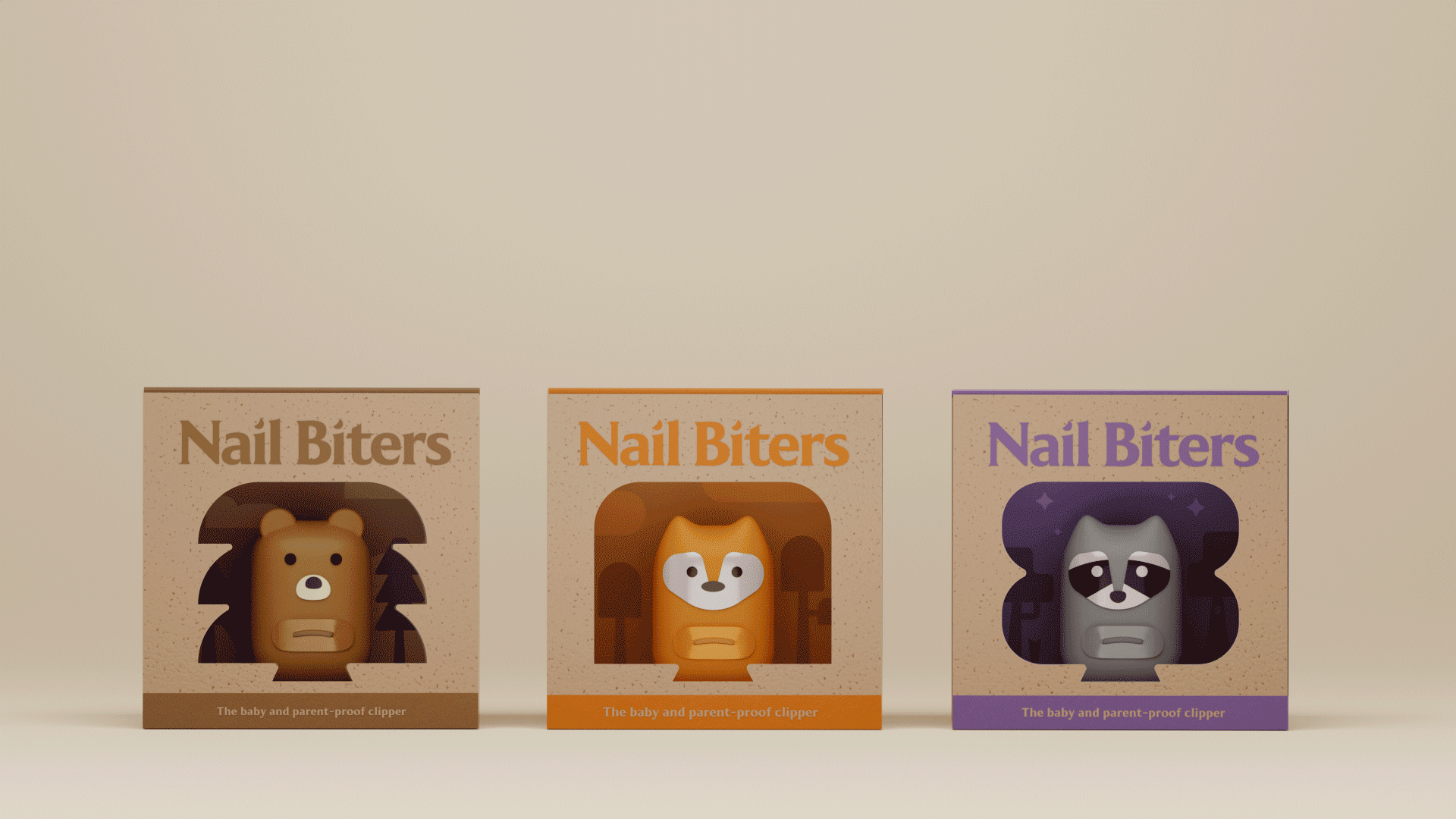 Newborn baby and afraid to clip their tiny nails? Nail Biters is a safe electronic nail clipper that is comfortable and friendly. At Riley, we provided branding and product concepting work to create playful characters to make clipping nails more fun.